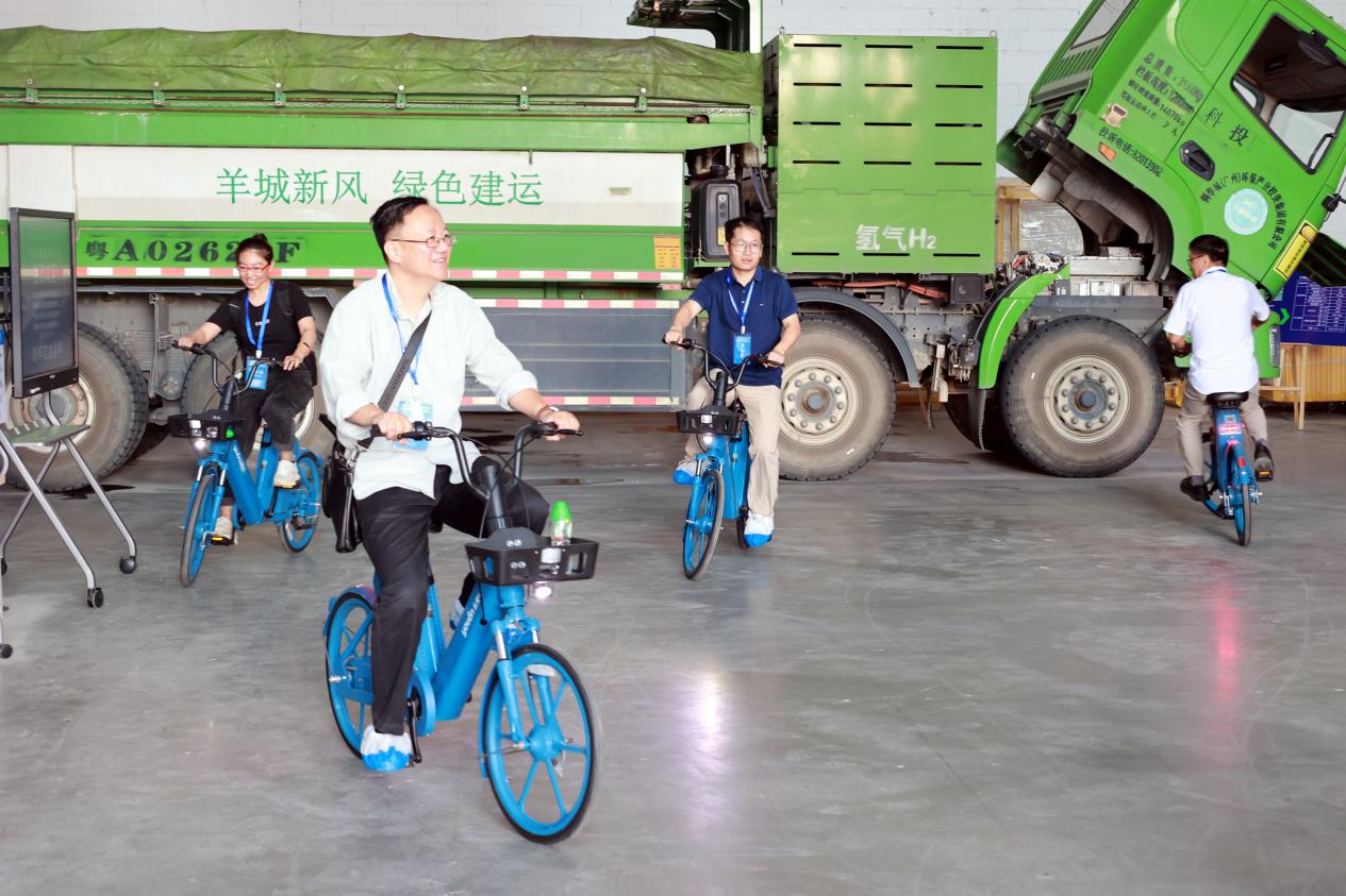为向专家、教授们展示氢能产地化落地应用的情况,特在集团番禺新基地设置了展示区,重点展示了氢能源自行车、氢能燃料电池货车,以及花安堂番禺新基地未来承载的功能。专家、教授们对氢能产地化落地应用成果饶有兴趣,体验骑行了氢能源自行车。